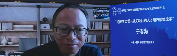 中国人民大学经济学院副院长于春海详细介绍了中国人民大学近年在本科生教学方面做的尝试及改革,经济学大类 拔尖创新的培养模式为我院未来人才培养方式的改进提供了宝贵的借鉴。