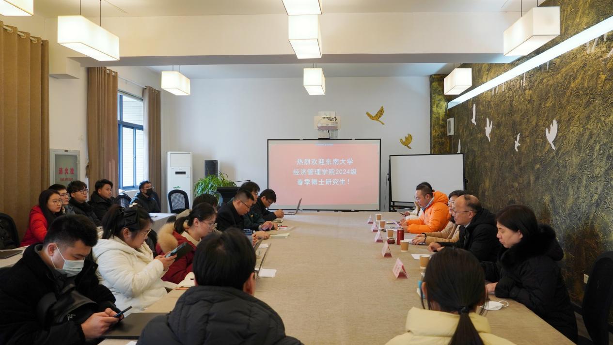 3月1日下午,东南大学经济管理学院2024级春季博士研究生师生见面会于九龙湖校区经管楼科研活动中心隆重举行。经济管理学院党委书记、博士生导师袁健红老师,学院副院长、博士生导师薛巍立老师,学院党委副书记兼副院长、博士生导师尹威老师,研究生教务老师杨悦老师,金融系教师、博士生辅导员王轶伟老师与全体2024级春季博士研究生新生出席会议。本次见面会由尹威副书记主持。