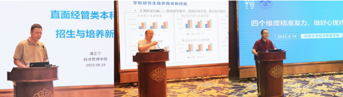 on august 18, the 2022 "digital economy and management education" strategic seminar of the school of economics and management of southeast university was successfully held in cuipingshan hotel. qin xia, minister of the academic affairs department of the party committee of southeast university and director of the student office, as well as party leaders of the school and representatives of faculty and staff attended the seminar. the meeting was chaired by yuan jianhong, secretary of the party committee of the school.