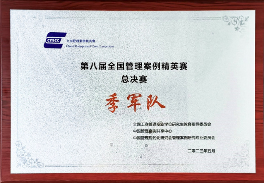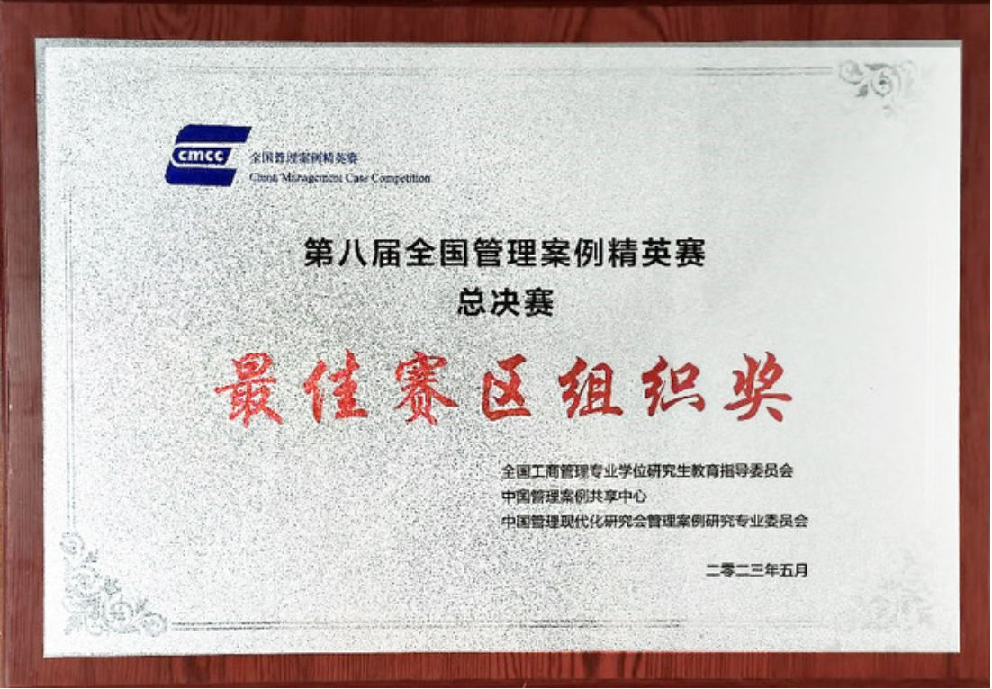 on 20 may 2023, the grand final of the 8th national management case competition was held at communication university of china (cuc). the competition was guided by the national steering committee for graduate education of business administration, hosted by the china management case sharing centre and the management case study professional committee of the china management modernization research association, and organized by the school of economics and management of communication university of china. 24 teams from 24 institutions across china battled hard for more than 60 hours to compete against each other. the southeast university mba team performed well and won the third place, the "best organization award" and the "best online popularity award" in the 8th national management case competition.