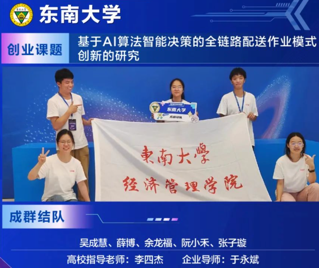 on november 19, 2023, the 8th ririshun maker training camp "c rotation training" - society training camp ended successfully in wuxi, jiangsu.the project proposed by wu chenghui, xue bo, yu longfu, ruan xiaohe, and zhang zixuan, five undergraduates majoring in logistics management, was guided by li sijie, a teacher from the department of logistics management engineering of our college. under the joint review of expert judges and enterprise tutors, the research on the innovation of full chain delivery operation mode based on ai algorithm intelligent decision successfully broke into the "c rotation training" after the enterprise research team in the links of "seed set", "angel study", "a round research" and "b round creation" set up project research and roadshow and won the 2023 ririshun maker training camp. teacher li sijie from our college has been awarded the titles of "excellent guidance teacher" and "excellent mentor", and southeast university has been awarded the excellent organization award. this is also the third time our undergraduate team has won the national gold award at the ririshun maker training camp.