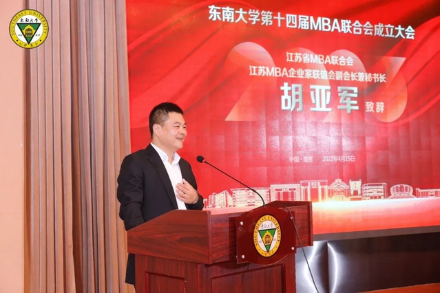 on behalf of the jiangsu mba federation and jiangsu mba entrepreneurs’ friendship association, president hu yajun expressed his heartfelt congratulations on the establishment of the 14th mba federation of southeast university. president hu said in his speech that jiangsu mba entrepreneurs’ friendship association upholds the mission of "interconnection and integration, cooperation and win-win", aiming to provide a platform for interaction and communication between mba students and universities. president hu said that the mba of southeast university, as one of the programs with great brand influence in the yangtze river delta region, has been playing an important role in the linkage between universities, and he looked forward to more exchanges and cooperation with the mba federation of southeast university in the future, so as to improve together and make greater contributions to the construction of the local economy.