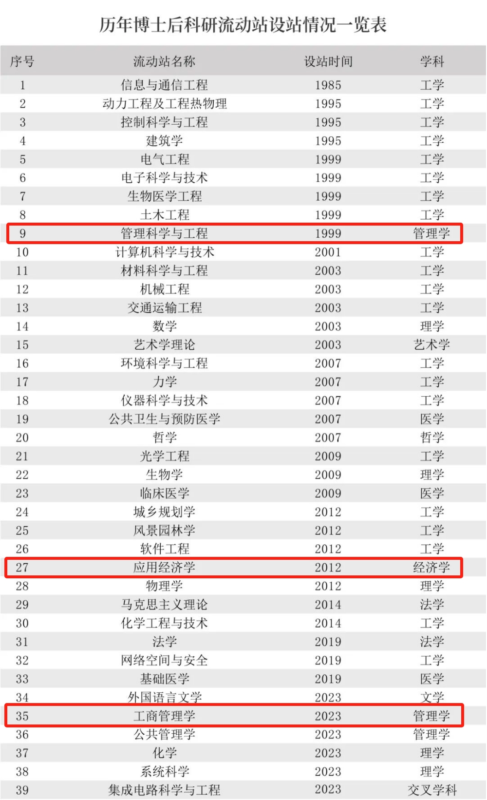 in november 2023, the ministry of human resources and social security and the national postdoctoral management committee jointly issued the notice on approving the establishment of 510 postdoctoral research stations of philosophy and other postdoctoral research stations of northeast normal university (letter of the ministry of human resources and social security [2023] no. 108), and the first-class disciplinary doctoral program of business administration in southeast university was approved to set up a postdoctoral research station. so far, the school of economics and management has three postdoctoral research stations in management science and engineering, applied economics, and business administration, realizing the full coverage of all the first-class disciplinary doctoral programs in the school.